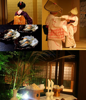 乾杯からは七夕織姫芸妓・舞妓も加わり、旬の祭り鱧そして鮎、京野菜の万願